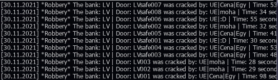 Rezzy Posted November 26, 2021 Posted November 26, 2021 Date: 23/11/2021LS Bank Robbery: (8/8).[s=]Date: 25/11/2021LV Bank Robbery: (8/8).Date: 26/11/2021TR Bank Robbery: (8/8).[/s] Quote